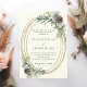 Ivory cone pine greenery gold frame wedding invitation