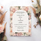 A soft ivory colored arch shaped background decorated with dusty rose and mauve colored florals. Personalize and add your names and the details. Green colored text.