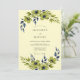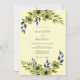 This design showcases a soft ivory background embellished with elegant watercolor florals in shades of sage green and deep navy blue. The delicate anemone blooms and flowing foliage create a serene, airy atmosphere. Rich indigo leaves provide a striking contrast against the pale canvas, evoking a sophisticated and refined aesthetic for a seasonal event.