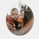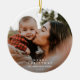 A joyfully hand-painted festive botanical photo ceramic ornament. Customise with your own family photo and signature to cherish year after year!