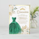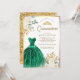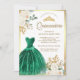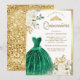 Ivory Floral Emerald Green Gown Gold Quinceanera Invitation