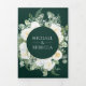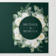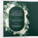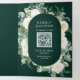 Ivory Floral Photo Emerald Green QR Code Wedding Tri-Fold Invitation