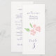 This lovely wedding menu and table number combo card features a contemporary set of purple fonts, a blush watercolor floral illustration, as well