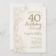 Ivory Gold Floral 40th Birthday Party Invitation. Minimalist modern design featuring botanical outline drawings accents and typography script font. Simple trendy invite card perfect for a stylish female bday celebration. Can be customized to any age. Printed Zazzle invitations or instant download digital printable template.