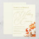 This sophisticated wedding invitation captures the beautiful "Verona Sunset" aesthetic in a luxurious and refined way. The classic ivory background and elegant gold text evoke a sense of timeless romance, while the vibrant watercolor florals in white and orange add a touch of modern, artistic flair. This design is perfect for couples planning a formal or classic wedding with a warm, romantic feel.