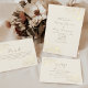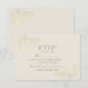 Elegant ivory RSVP card with refined gold floral accents and romantic script details. Includes space for guest names, attendance response, and meal preferences (vegetarian, gluten free, vegan). A timeless complement to your classic or formal wedding invitation suite.