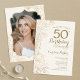 Ivory Gold Floral Photo 50th Birthday Party Invitation. Minimalist modern design featuring botanical outline drawings accents and typography script font. Simple trendy invite card perfect for a stylish female bday celebration. Can be customised to any age. Printed Zazzle invitations or instant download digital printable template.