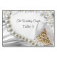 Ivory, green, blue, or gold silk & Pearls decorated with Mexican Tuberose's. They are waxy white flower s that have a sultry and seductive rich fragrance. number and name cards for each table