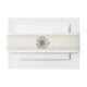 Elegant wedding invitation belly band, with graphics of an ivory lace edged ribbon, with an ivory flower, in the middle. Lovely finishing touch to your wedding invitation set. Matching return address wrap label available.
