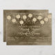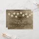 Virtual wedding invitation. Rustic brown background with ivory twinkle lights and paper lanterns.