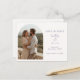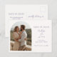 This chic and stylish wedding save the date postcard features a lovely boho arch couple photo and contemporary set of lavender fonts, against a soft ivory background. Variations of this design is available in the full collection. Perfect choice for a spring summer garden wedding.