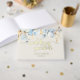 For weddings and showers, this icy blue and gold touched design is lovely for your guestbook memories. Unique slightly Boho font pairings printed in real foil. Watercolor florals are ice blue on an ivory linen colour ground, romantic, elegant, and luxe.