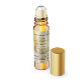 A label for perfume roller bottles featuring a faux gold and ivory marble coloured background.
