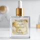 a luxury beauty label with a faux ivory marble and faux gold foil background.