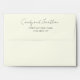 Ivory color mailing envelope for your wedding invitations and features your name and address printed on back flap in a modern script style. Personalize your envelope by editing and replacing name and address with your own. Edit further to change font style or color. Select your envelope size that fits your invitation.
