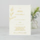 Announce your special day with timeless elegance with this personalized, minimalist wedding invitation, designed for couples who appreciate understated beauty. This elegant design features a delicate, minimalist line drawing of a botanical olive branch with olives and leaves — a symbol of peace and enduring love. Set against a warm, stylish ivory background, the design and text is brought to life with real gold foil detailing, adding a luxurious touch to the natural simplicity. Elegant calligraphy script paired with modern typography fonts enhances the overall sophistication, while the couple's monogram is beautifully incorporated as a personal and graceful accent. Perfect for modern weddings with a natural, earthy theme, this invitation sets the tone for a refined and meaningful celebration.