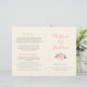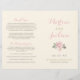 A delicate pink rose with soft gold accents creates an understated bohemian ceremony program on a warm ivory background. Your names appear in romantic gold script, with the single bloom adding a beautifully simple focal point. Inside pages are fully customisable for your bridal party, ceremony order, and a personal thank you message on the back cover. Programs are printed on text-weight paper and arrive flat, requiring a simple centre fold.