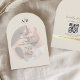 The softly rounded arch shape adds a timeless, elevated feel, while the ivory background keeps the design clean and refined.