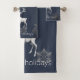 Indulge in festive luxury with this Blue Ivory Reindeer Christmas Bath Towel Set, a perfect addition to Christmas bath gifts and holiday bath accents. This plush set embraces a winter theme with an ivory reindeer and elegant snowflakes delicately embroidered in a simple layout. The modern typography featuring "Happiest Holidays" adds warm holiday wishes to your bathroom decor. Crafted for softness and absorbency, these towels bring cosy elegance to your daily routine or make a thoughtful gift. Transform your bath into a seasonal sanctuary with this charming and sophisticated set.