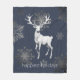 Ivory Reindeer Christmas | Blue Fleece Blanket