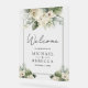 Amaze your guests with this elegant wedding welcome sign featuring rustic flowers and modern typography.