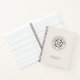 Simple custom round company logo with slogan and website address on colour editable ivory background, no minimum order quantity and no setup fee, great business notebook with logo.