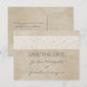 Simple and elegant Rustic Lace Save the Date Postcard featuring a vintage textured paper look background and a sweet and dainty lace pattern border in white. Easy to customise, simply add your wedding details. Click "Customise It" to find more personalisation options.