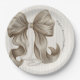 Ivory Striped Bow Baby Shower Paper Plate