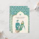Ivory Teal Pattern Anand Karaj Sikh Wedding Invitation