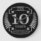 A design to celebrate 10 years of marriage. This design has a Grey / silver (the traditional colour for this anniversary) coloured laurel design on a black background. Tin is the traditional gift for this occasion. The text reads Tin 10 years anniversary. A romantic design to celebrate your 10th year of marriage. If you would like any help customising this design please contact me, their is an ask this designer button, just below this text.