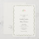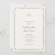 Chic and stylish. This lovely soft ivory wedding invitation features a whimsical wavy border, petit watercolor blush floral accent, alongside a contemporary set of fonts. Additianal text is included at the back which is optional.