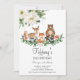 Ivory White Floral Cute Woodland Animals Birthday Invitation