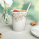 Beautiful Ivory White Floral Gold Leaves Paper Cups