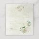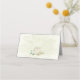 Beautiful romantic wedding place card featuring ivory white flowers and some pretty green leaves .