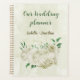 Beautiful romantic planner featuring ivory white flowers and some pretty green leaves .