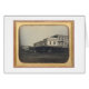 The Bancroft Library Presents: View of street corner from J Street, looking up 4th Street towards I Street. Shops include Hermance & Burton, Tin and Sheet Iron Ware (with a decorative fish on the chimney), Haworth Eells & Co's Wagon & Blacksmith Shop (with used covered wagons and carts for sale in street), Oriental [Hotel]. Several men are standing on the porch in front of the tin shop. Photo by George Howard Johnson, 1852.