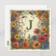 "J" Verdigris Green: Bloom & Monogram Holiday Card