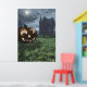 Decorate your home for Halloween with this original digital artwork featuring a grinning Jack O'Lantern and a spooky haunted mansion, created in Vue D'Esprit by artist Jayne Wilson.