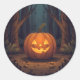 Jack O' Lantern Glowing In The Forest Classic Round Sticker