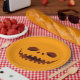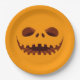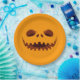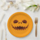 A creepy jack o' lantern carved smile is featured on these orange Halloween party paper plates. MATCHING items in our store.