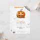 This invitation encapsulates the essence of Halloween with its intriguing and thematic design. Set against a pristine white backdrop, a menacing jack-o'-lantern takes centre stage, instantly setting the tone for a night of eerie excitement and pumpkin carving.