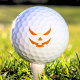 Spooky orange Halloween golf ball. Pumpkin / jack-o-lantern face design. Unisex for men and for women. Suitable for kids and adults.