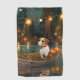 Set sail into the magic of the holiday season with this beautifully detailed illustration, showcasing a proud dog sitting in a festively decorated boat, gliding across a serene Christmas lake. The twinkling lights from nearby pine trees reflect off the water, casting a warm, festive glow that enhances the cosy ambiance. Ornaments dangle from the boat's sides, while glowing lanterns light the way, creating a scene that captures the true essence of Christmas warmth and joy. This nostalgic artwork brings a touch of holiday magic to any space, perfect for those who cherish the spirit of the season.