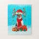 Jack Russell in snow with Christmas gifts Jigsaw Puzzle