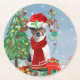Jack Russell Terrier Dog in Snow Christmas Gifts Round Paper Coaster