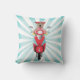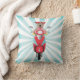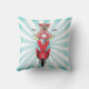 Super cute Jack Russell Terrier riding on a red moped with goggles on a sunburst background Pillow. Hand drawn illustration by McBooboo
