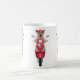 Super cute Jack Russell Terrier riding on a red moped with goggles coffee mug. Hand drawn illustration by McBooboo