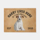 Jack Russell Terrier Personalised Dog lover welcome doormat. This welcome mat can be personalised with your dog’s name, the slogan can also be changed or you could use a picture of your own dog (make sure it's transparent). Text reads: Harry lives here…. All treats welcome