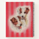 A SUPER cute image of two super cute Jack Russell terriers gracing a notebook !! A marvelous gift for the fan of Jack Russell terriers. Note that the image appears on the back cover in mirror image. Note also that my shop has this same notebook with a blue background. Finally note that my shop has this image in blue and pink on a square size notebooks.