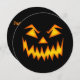 This is a Halloween Pumpkin Carving Invite. Front displays a glowing jack-o-lantern face. Back has details that can be edited to fit your date, time, location and rsvp information. This invitation is a 5.25 x 5.25 Circle Invitation.